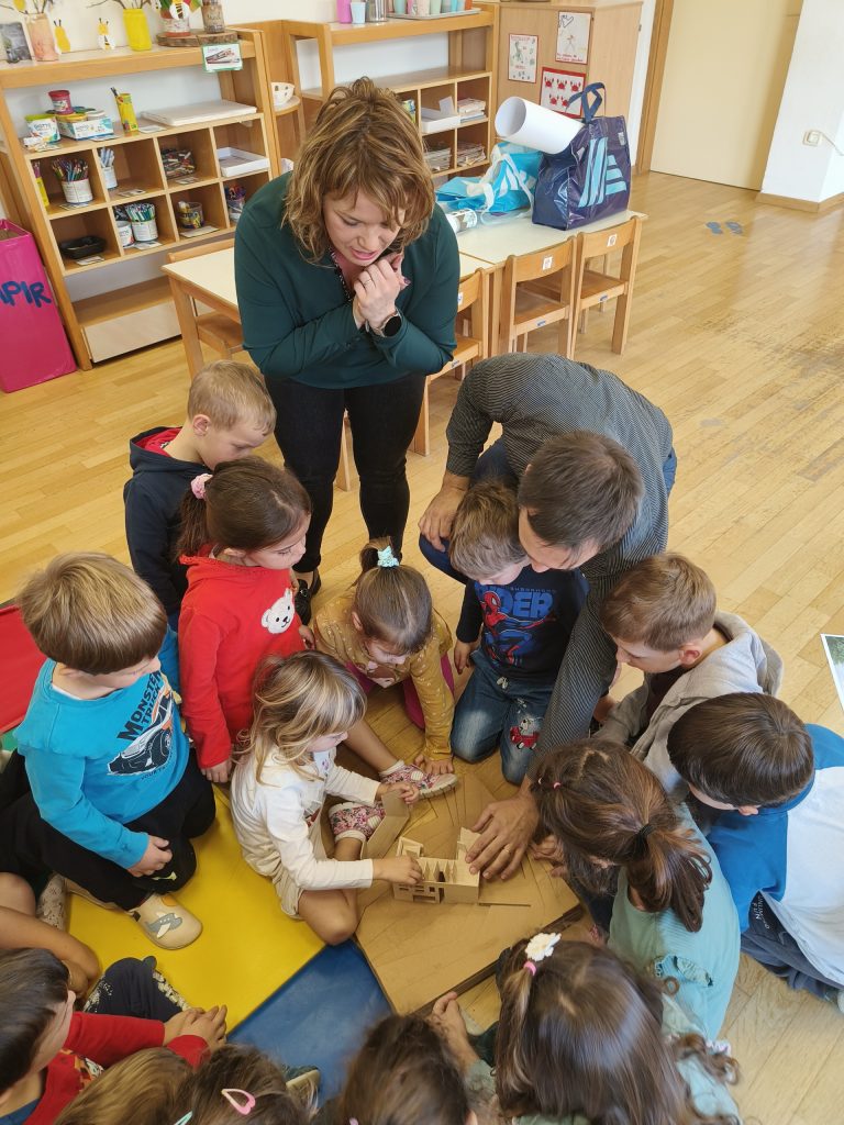 V torek smo, v skupini Raki, spoznavali poklic arhitekta. Predstavila sta ga mama Katja in tata Gašper, ki sta bila v šoli sošolca. Povedala sta nam, kaj arhitekt počne – meri in riše načrte. Zaradi varnosti včasih uporablja čelado. Spoznali smo tudi vodno tehtnico, s katero preverjamo, ali je nekaj vodoravno ali navpično, ter merili […]