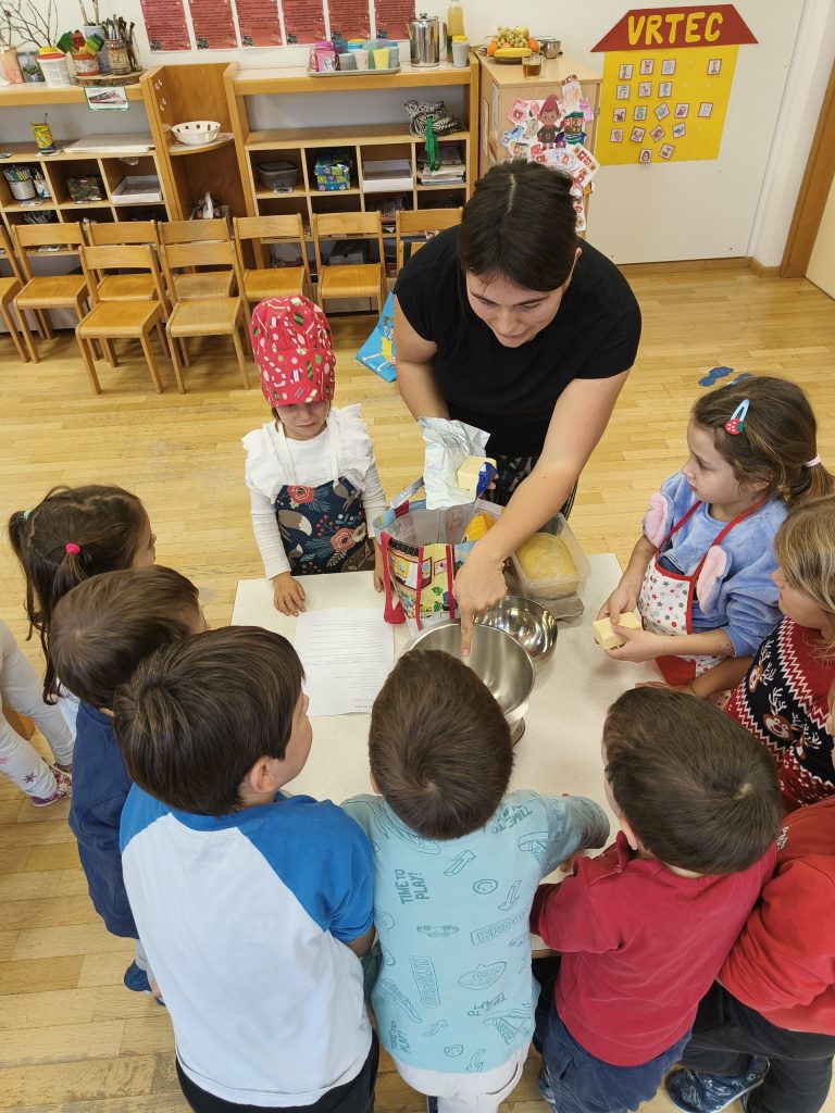 V prazničnem decembru se nam je v vrtcu Miren, v skupini Raki, pridružila mama Ana. S seboj je prinesla vse potrebne pripomočke in sestavine, da smo skupaj spekli piškote. Najprej nam je pokazala recept, na katerem je pisalo, kaj potrebujemo in kako piškote pripravimo. Skupaj smo tehtali in mešali sestavine. Testo smo zvaljali z valjarjem […]